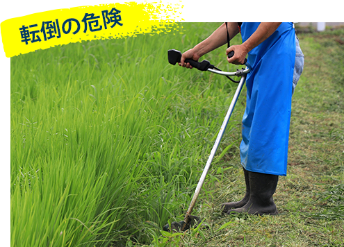 普段歩きなれた場所であっても、転落・墜落の危険性があるのが草刈り作業時に足元が斜面になっているケースです。